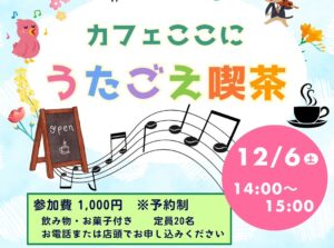 12月6日(土)、うたごえ喫茶を開催します♪うたごえ喫茶とは、懐かしい歌をみんなで楽しく歌いながら、喫茶で交流… 続きを読む: うたごえ喫茶のご案内 - 11月の週替わりランチ