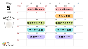 第1週:牛丼第2週:鰆のバジル焼き第3週:ピーマンの肉詰め第4週:キーマカレー第5週:スペイン風オムレツ お待… 続きを読む: 4月の週替わりランチ - 貸切営業のお知らせ