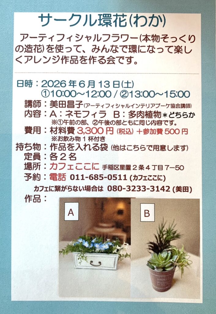 6月のサークル環花のご案内です。